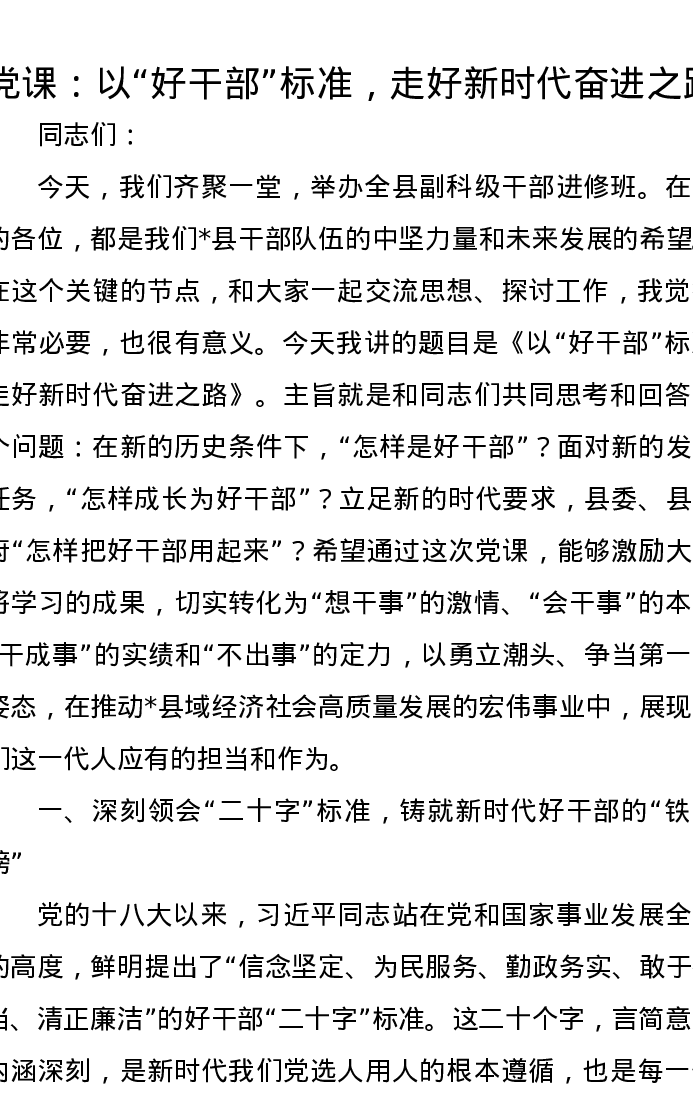 党课讲稿:以“好干部”标准,走好新时代奋进之路