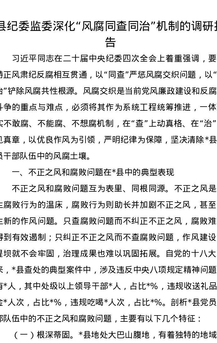 县纪委监委深化“风腐同查同治”机制的调研报告