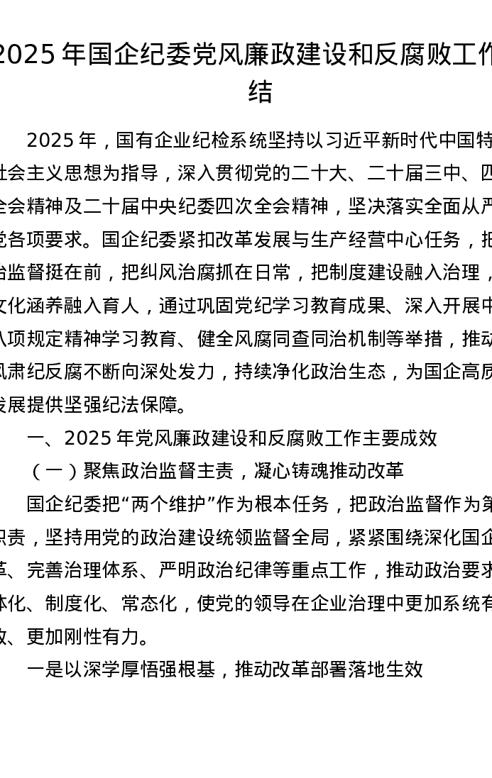 2025年国企纪委党风廉政建设和反腐败工作总结(7603字)
