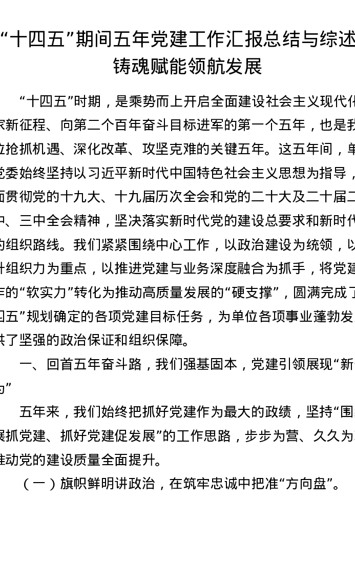 “十四五”期间五年党建工作汇报总结与综述:铸魂赋能 领航发展