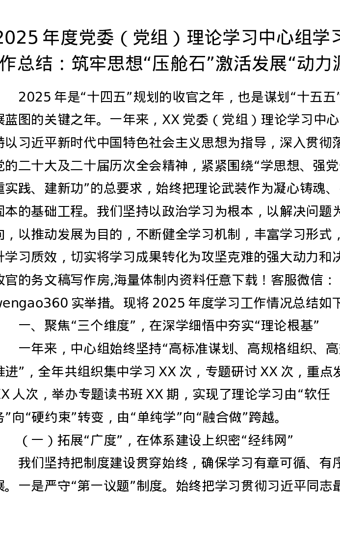 2025年度党委(党组)理论学习中心组学习工作总结:筑牢思想“压舱石” 激活发展“动力源”