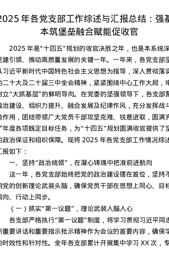 2025年各党支部工作综述与汇报总结:强基固本筑堡垒 融合赋能促收官