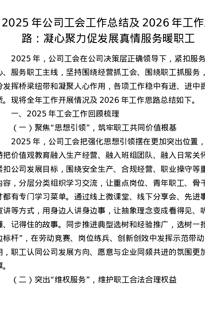 2025年公司工会工作总结及2026年工作思路:凝心聚力促发展 真情服务暖职工