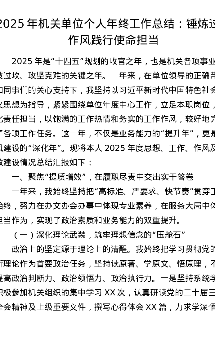 2025年机关单位个人年终工作总结:锤炼过硬作风 践行使命担当