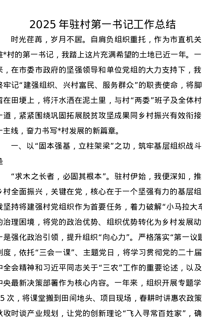 2025年驻村第一书记工作总结