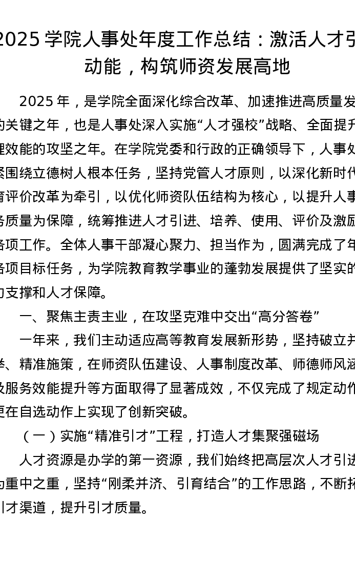 2025学院人事处年度工作总结:激活人才引擎动能,构筑师资发展高地