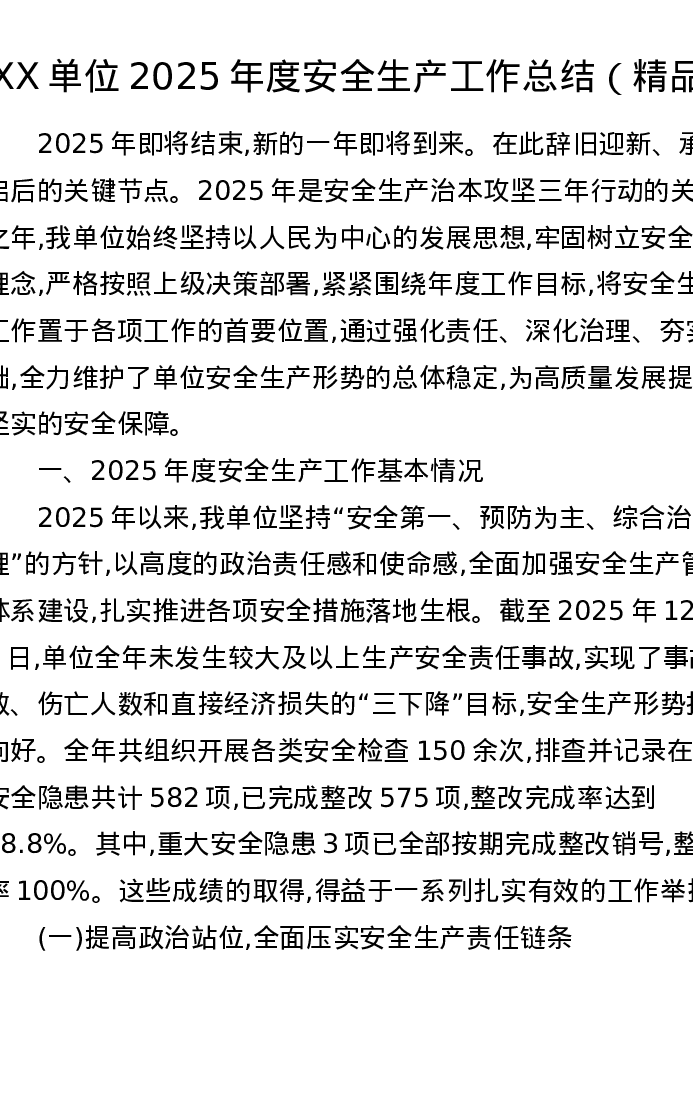 XX单位2025年度安全生产工作总结