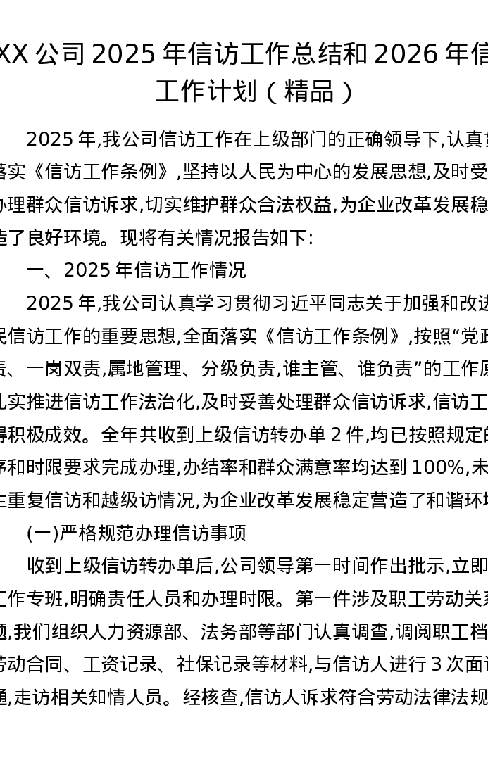 XX公司2025年信访工作总结和2026年信访工作计划