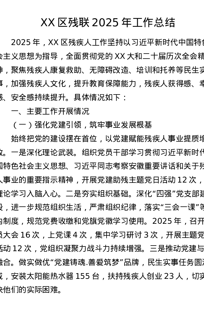 XX区残联2025年工作总结