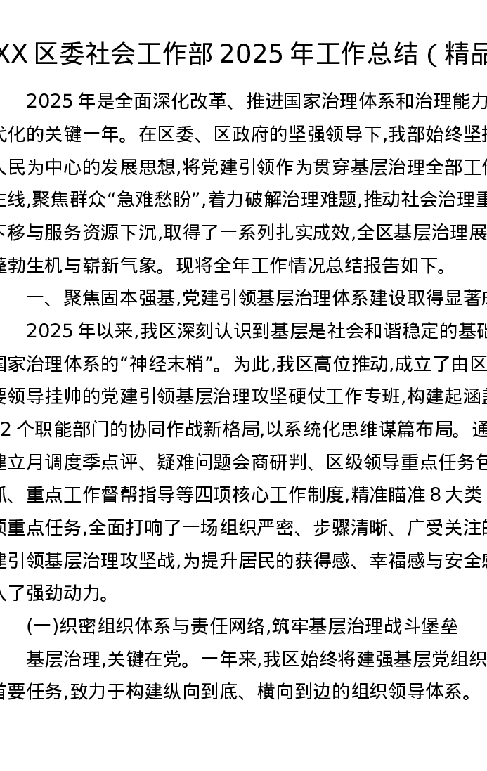 XX区委社会工作部2025年工作总结