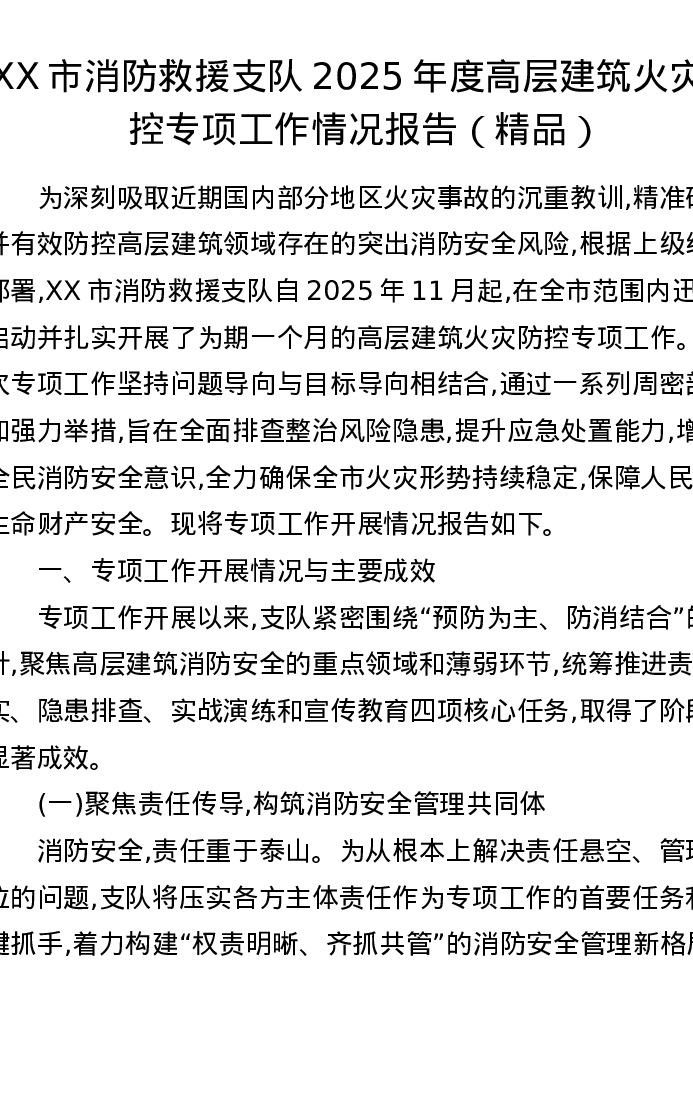 XX市消防救援支队2025年度高层建筑火灾防控专项工作情况报告