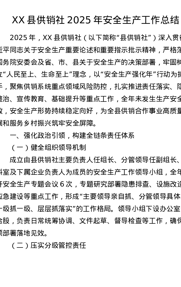 XX县供销社2025年安全生产工作总结