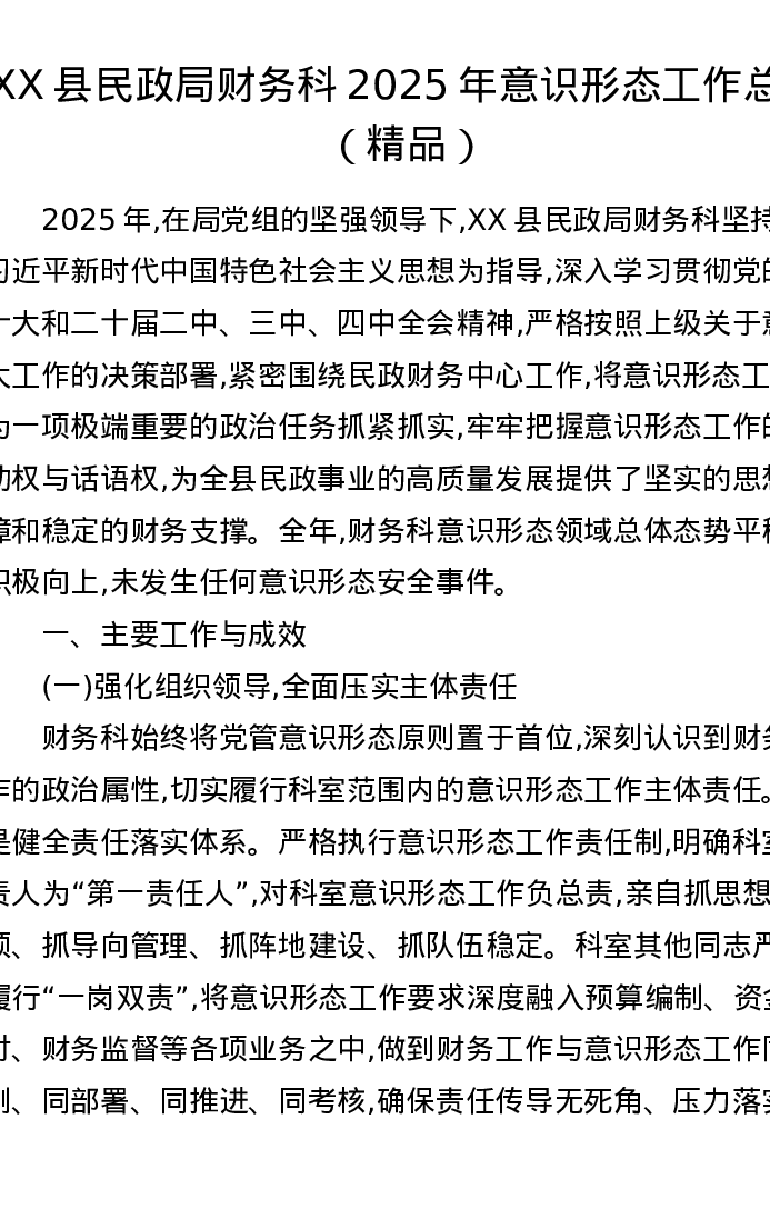 XX县民政局财务科2025年意识形态工作总结