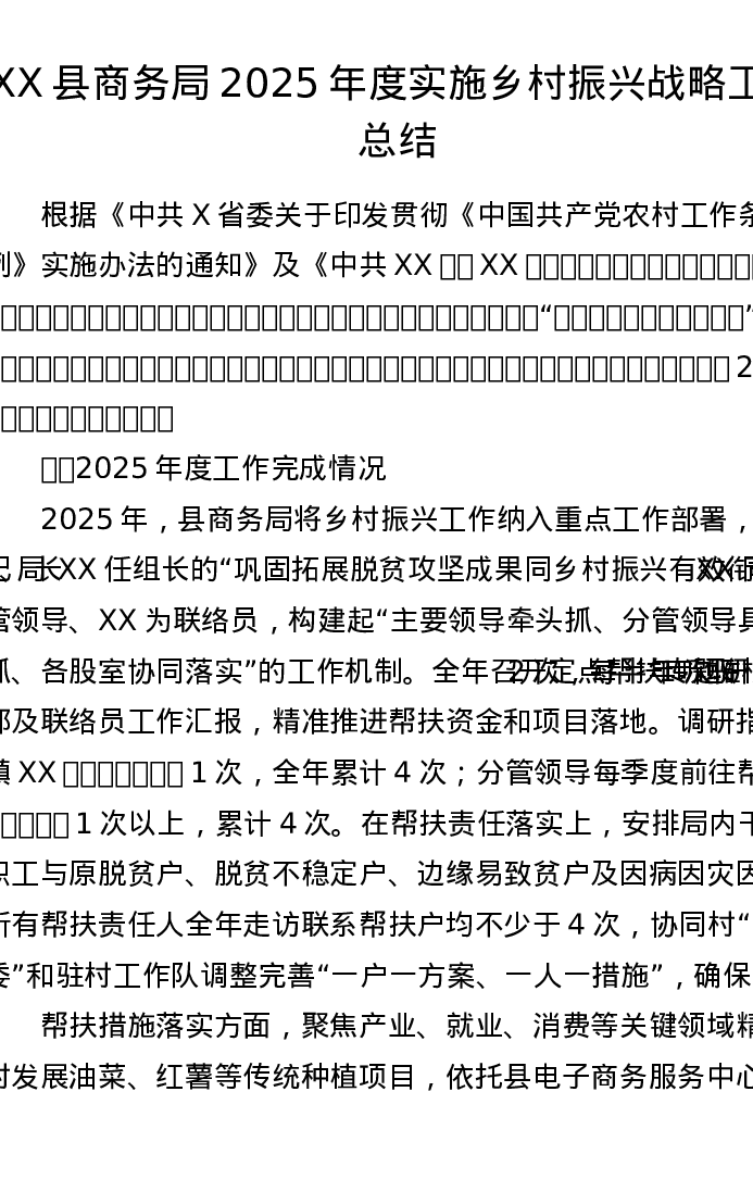 XX县商务局2025年度实施乡村振兴战略工作总结