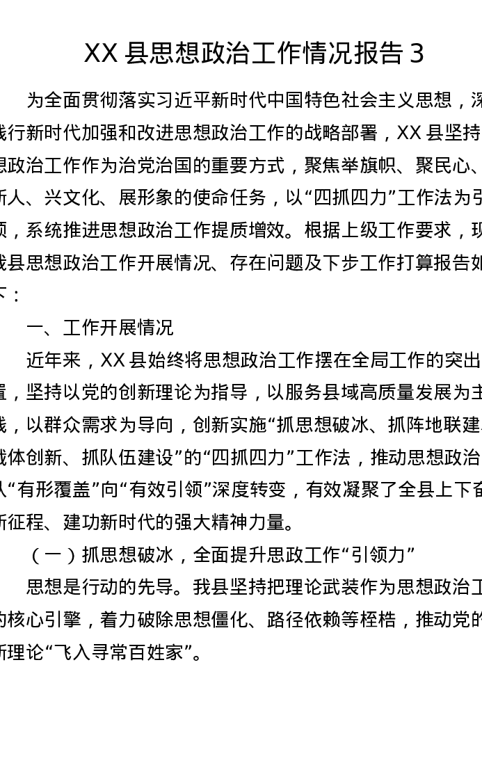 XX县思想政治工作情况报告3
