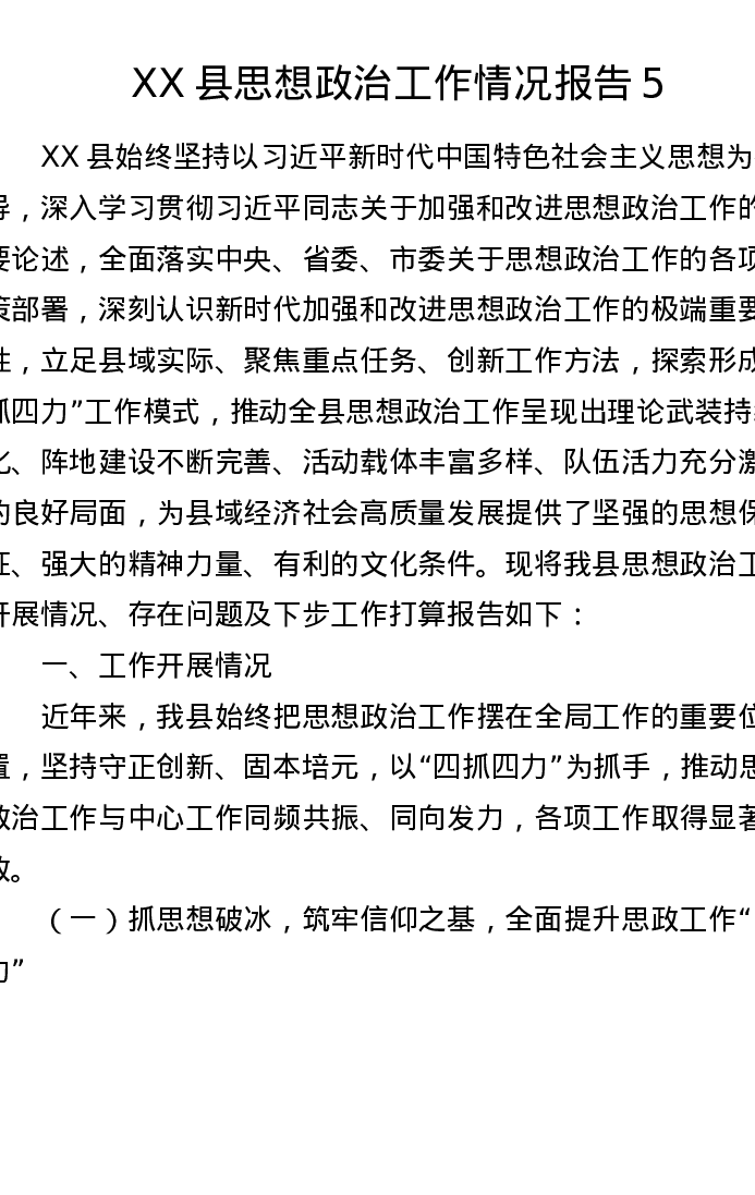 XX县思想政治工作情况报告5