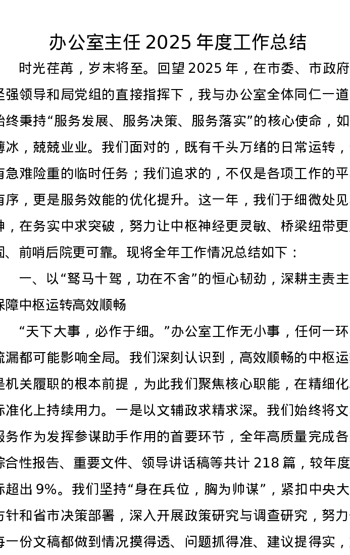 办公室主任2025年度工作总结