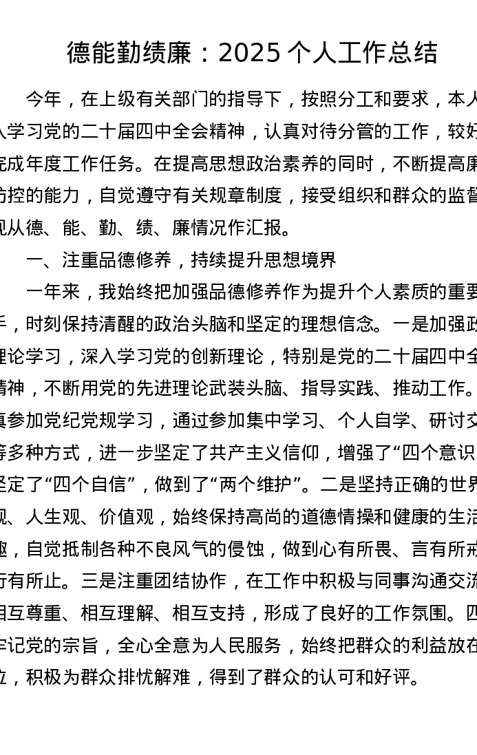 德能勤绩廉:2025个人工作总结