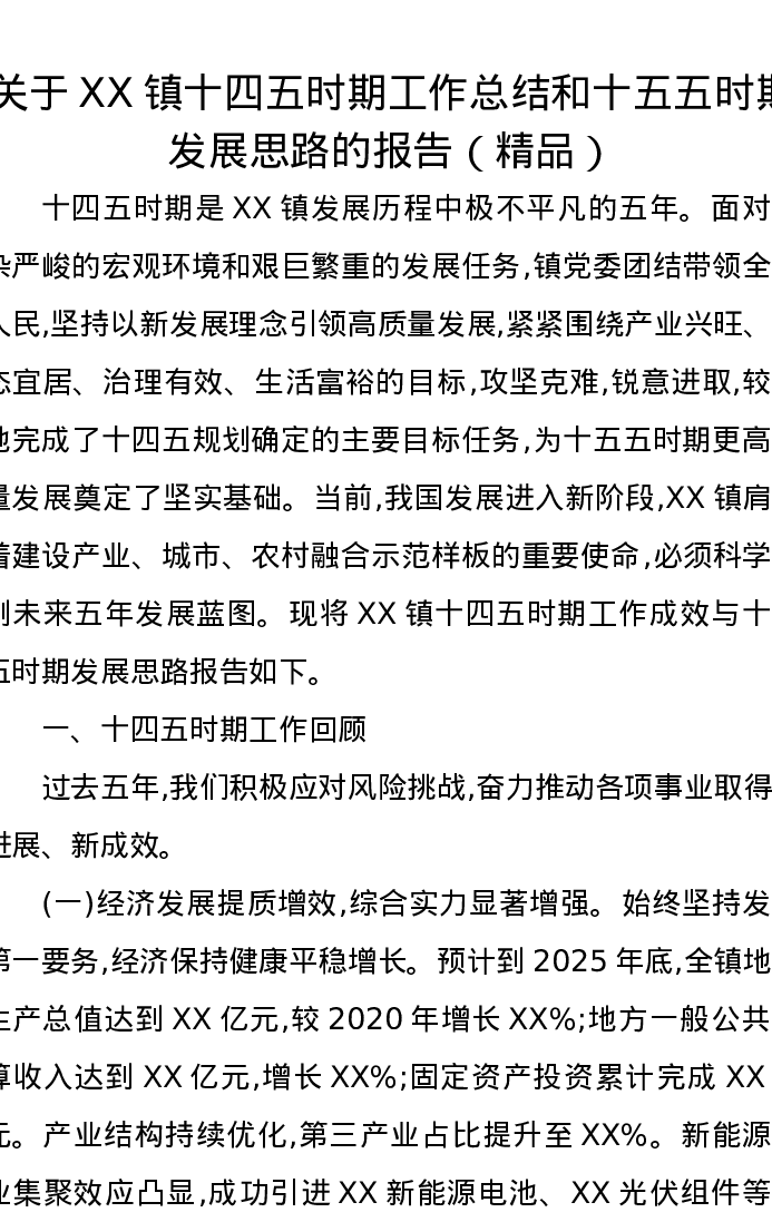 关于XX镇十四五时期工作总结和十五五时期发展思路的报告