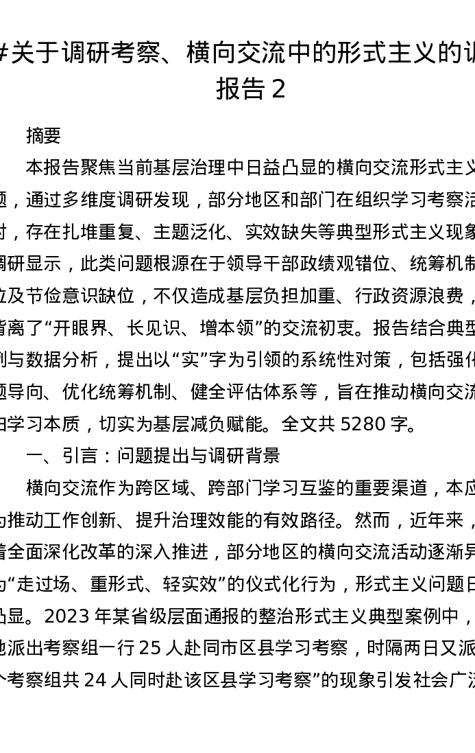 关于调研考察、横向交流中的形式主义的调研报告2