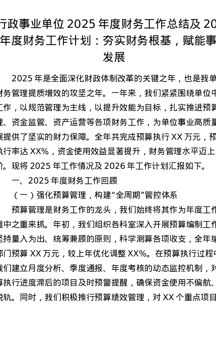 行政事业单位2025年度财务工作总结及2026年度财务工作计划:夯实财务根基,赋能事业发展