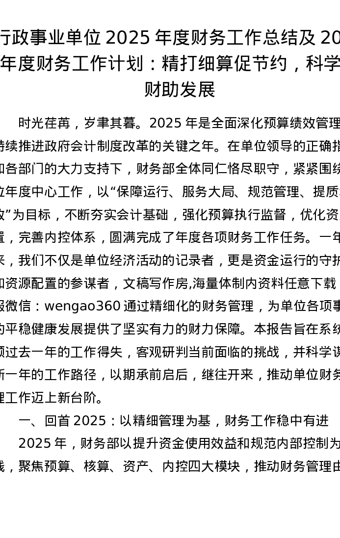 行政事业单位2025年度财务工作总结及2026年度财务工作计划:精打细算促节约,科学理财助发展