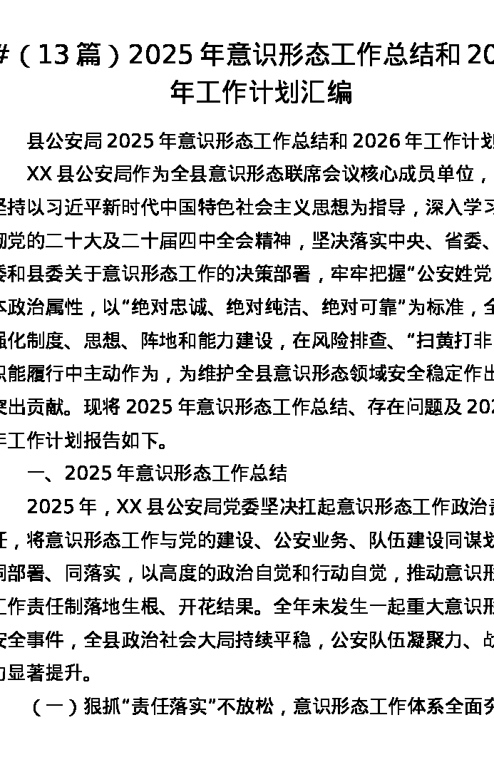 汇编:2025年意识形态工作总结和2026年工作计划13篇
