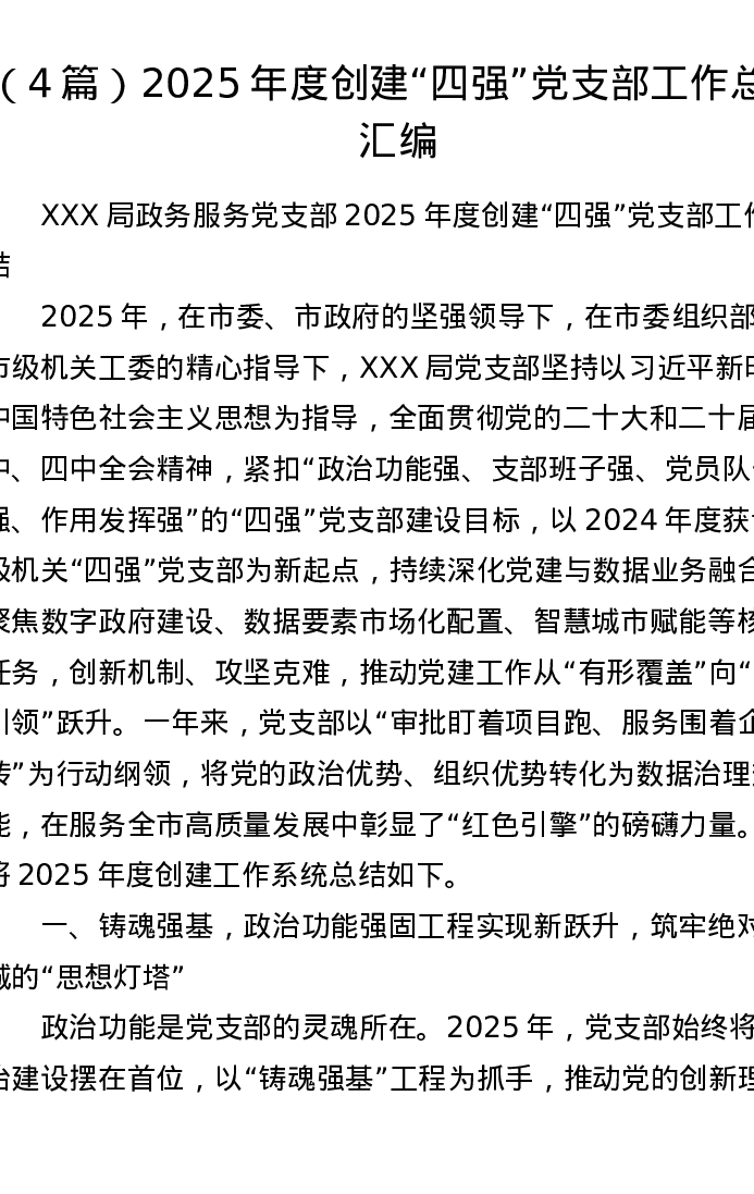汇编:4篇-2025年度创建“四强”党支部工作总结