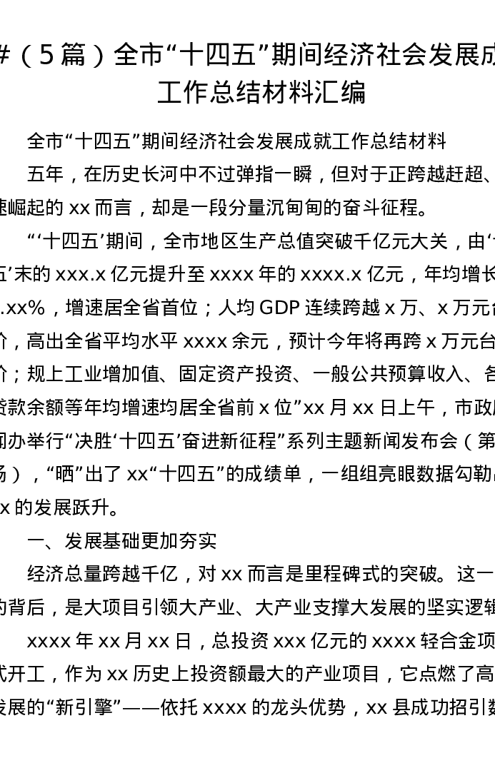 汇编:5篇全市“十四五”期间经济社会发展成就工作总结材料汇编