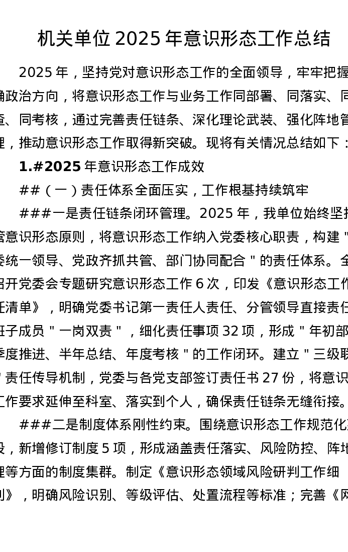机关2025意识形态总结
