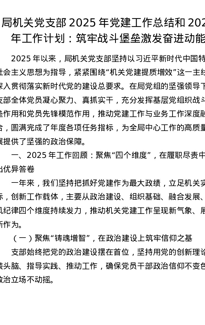 局机关党支部2025年党建工作总结和2026年工作计划:筑牢战斗堡垒 激发奋进动能