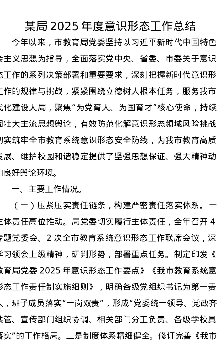 某局2025年度意识形态工作总结