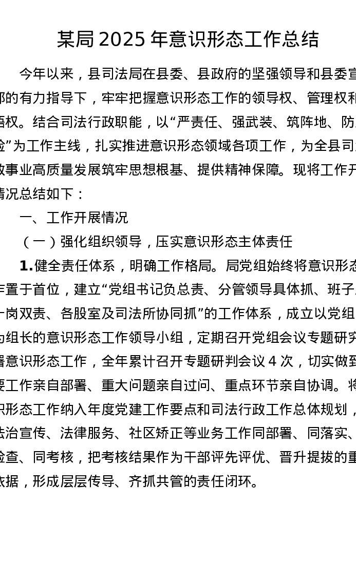 某局2025年意识形态工作总结(2972字)