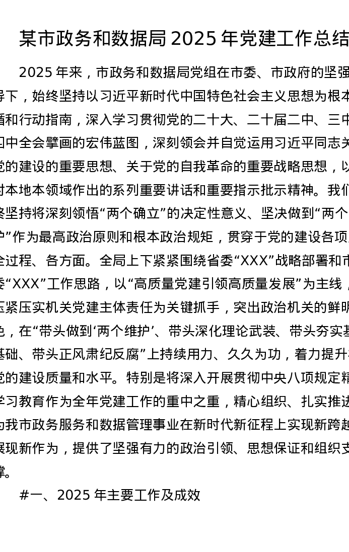 某市政务和数据局2025年党建工作总结(5543字)