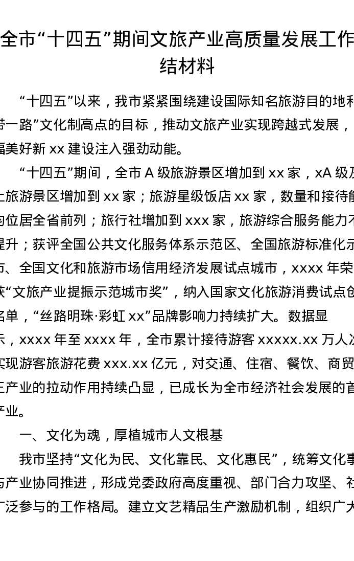 全市“十四五”期间文旅产业高质量发展工作总结材料