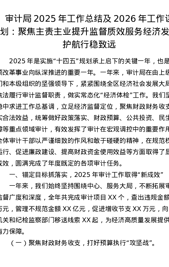 审计局2025年工作总结及2026年工作谋划:聚焦主责主业提升监督质效 服务经济发展护航行稳致远