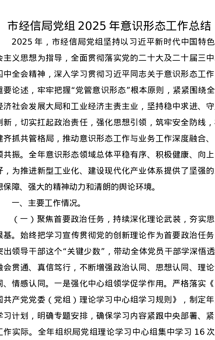 市经信局党组2025年意识形态工作总结