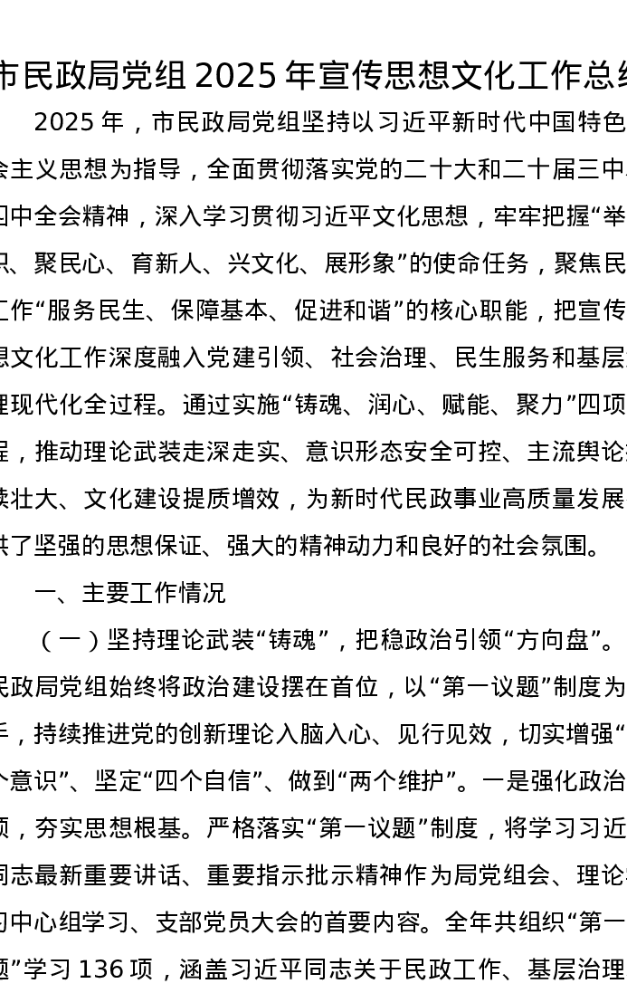 市民政局党组2025年宣传思想文化工作总结