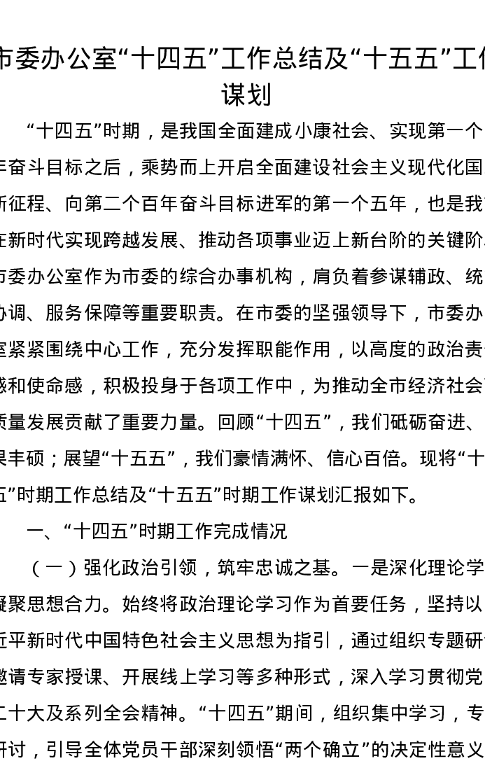 市委办公室“十四五”工作总结及“十五五”工作谋划