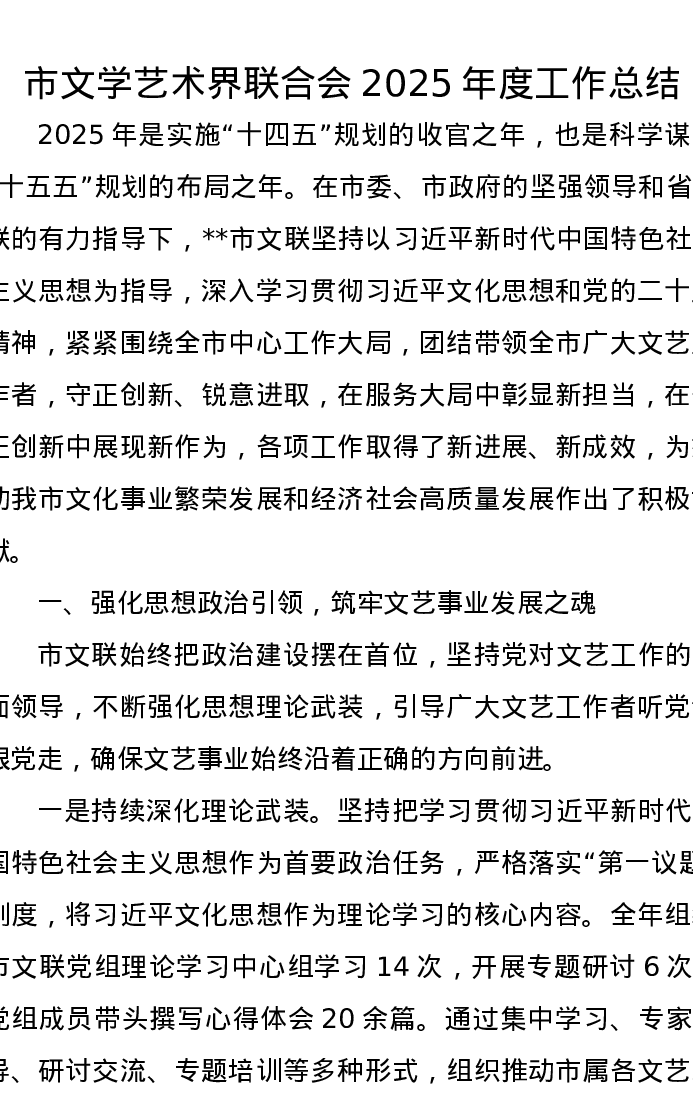 市文学艺术界联合会2025年度工作总结