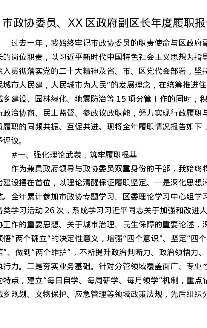市政协委员、XX区政府副区长年度履职报告(4704字)