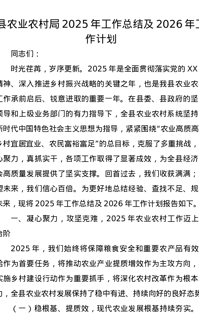 县农业农村局2025年工作总结及2026年工作计划