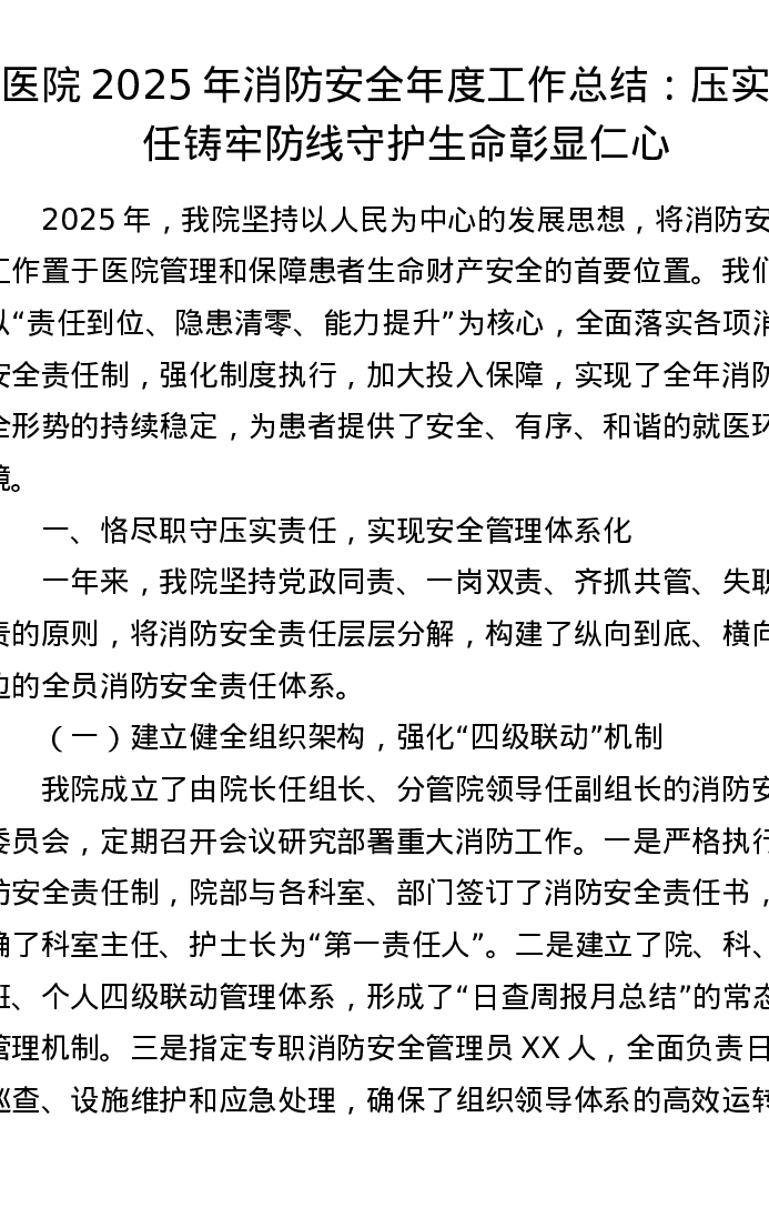 医院2025年消防安全年度工作总结:压实责任铸牢防线 守护生命彰显仁心