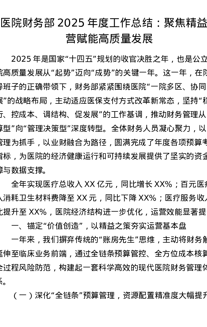 医院财务部2025年度工作总结:聚焦精益运营 赋能高质量发展