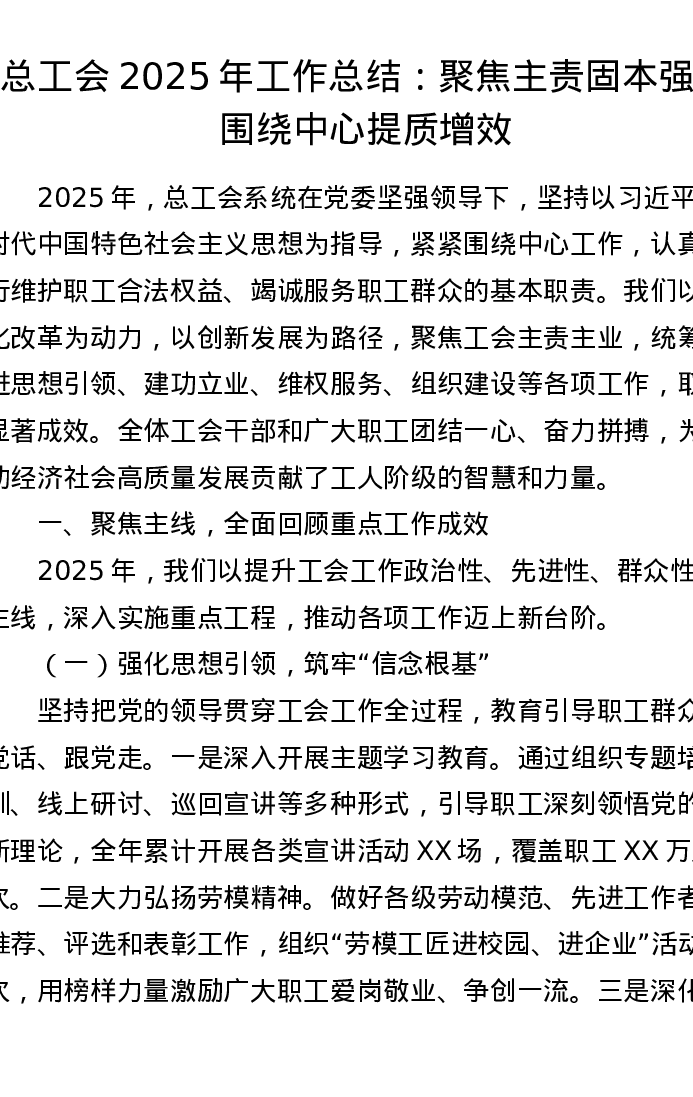 总工会2025年工作总结:聚焦主责固本强基 围绕中心提质增效