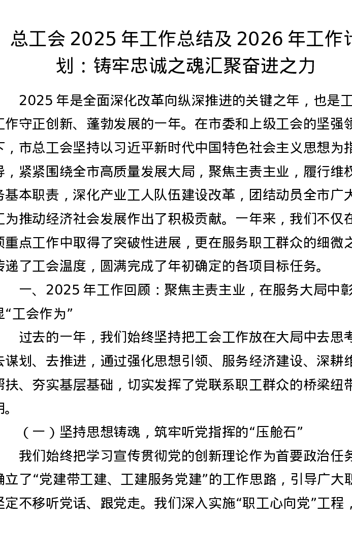 总工会2025年工作总结及2026年工作计划:铸牢忠诚之魂 汇聚奋进之力