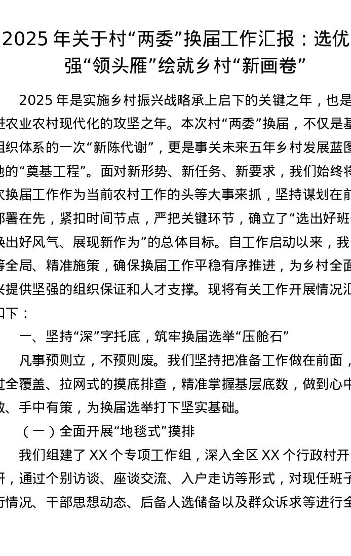 2025年关于村“两委”换届工作汇报:选优配强“领头雁” 绘就乡村“新画卷”