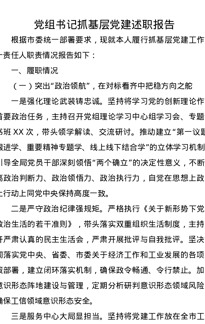 党组书记抓基层党建述职报告
