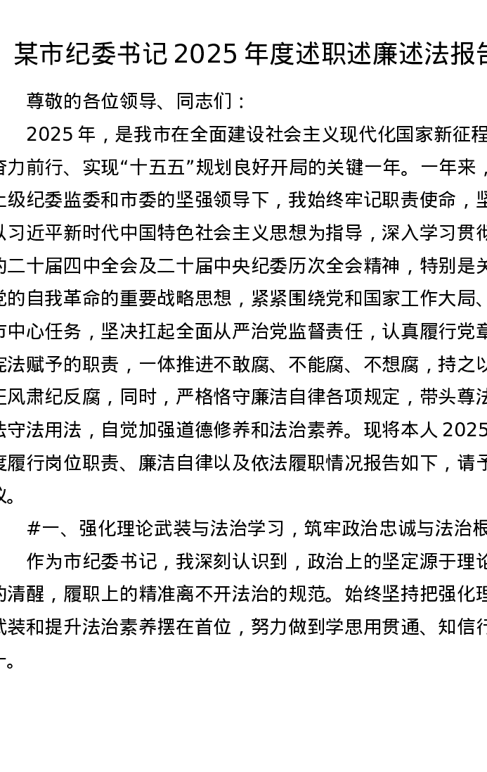 某市纪委书记2025年度述职述廉述法报告(5306字)