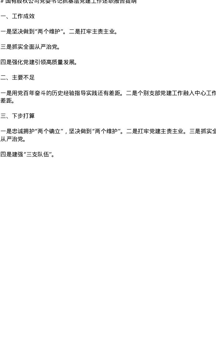 调研报告:国有股权公司党委书记抓基层党建工作述职报告提纲
